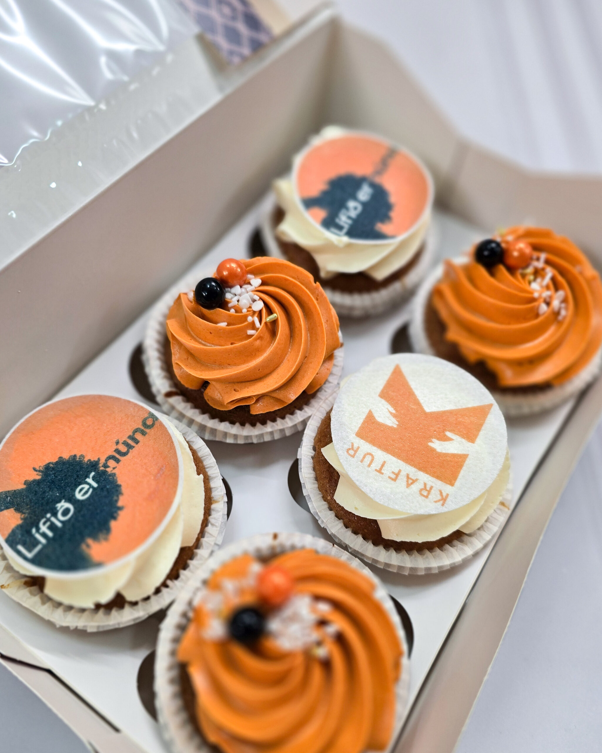 12 bollakökur á bakka, hægt að hengja logo/texta við hér fyrir neðan.