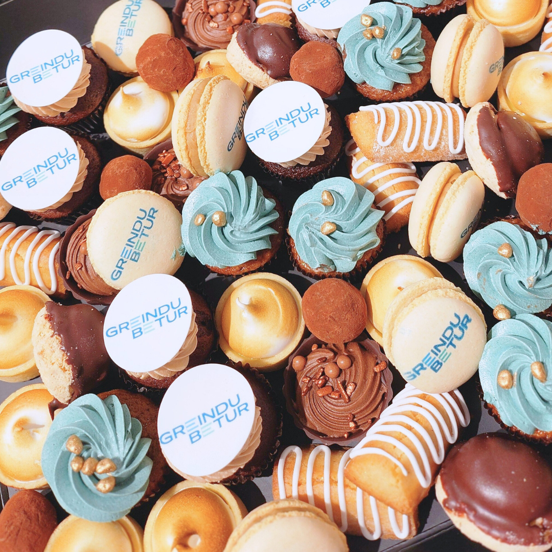 Hér fyrir neðan er hægt að hengja við logo/texta til að setja á makkarónur og minibollakökur. Litaþema er unnið í stíl við vörumerki nema annað sé tekið fram.